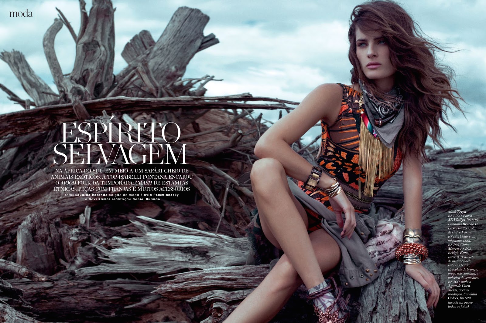 Wild Spirit - In african-inspired looks of colourful and layering of textured pieces, the terrain backdrop for the cover-story of the November issue of Marie Claire Brazil is photographed by Eduardo Rezende. Brazil beauty Isabeli Fontana wears the likes of Fendi, Burberry, Bottega Veneta, Rick Owens.