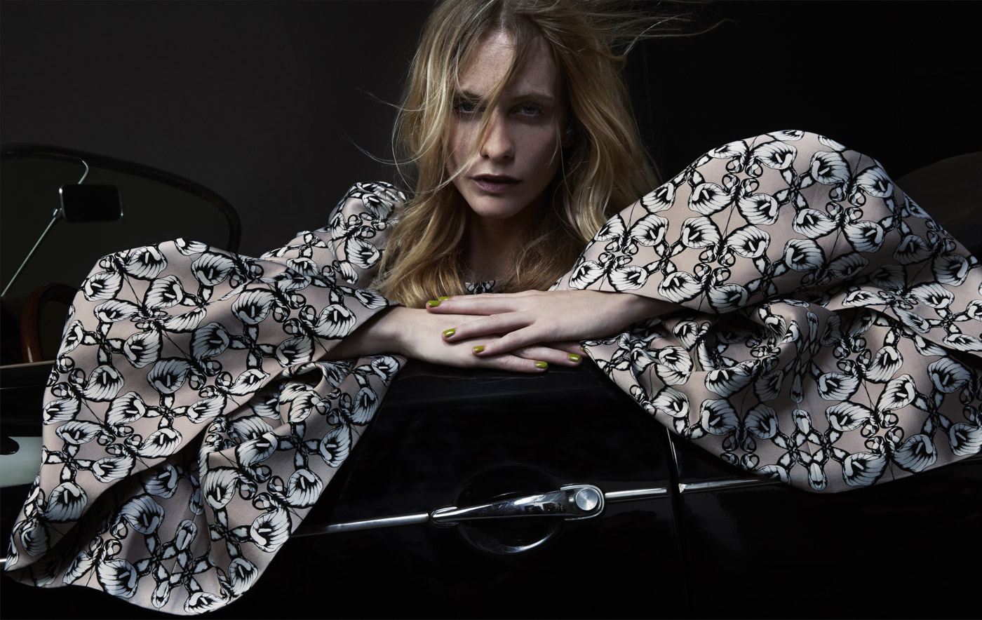 British socialite and model Poppy Delevigne becomes the face of the Spring/Summer advertising campaign for Thomas Wylde. Photographed by Davis Factor, Delevigne poses with classic car, wears ladylike looks with lace & floral pieces, styled together by Maryam Malakapour. Make-up by Kathy Yeung, Hair by Rob Salty.