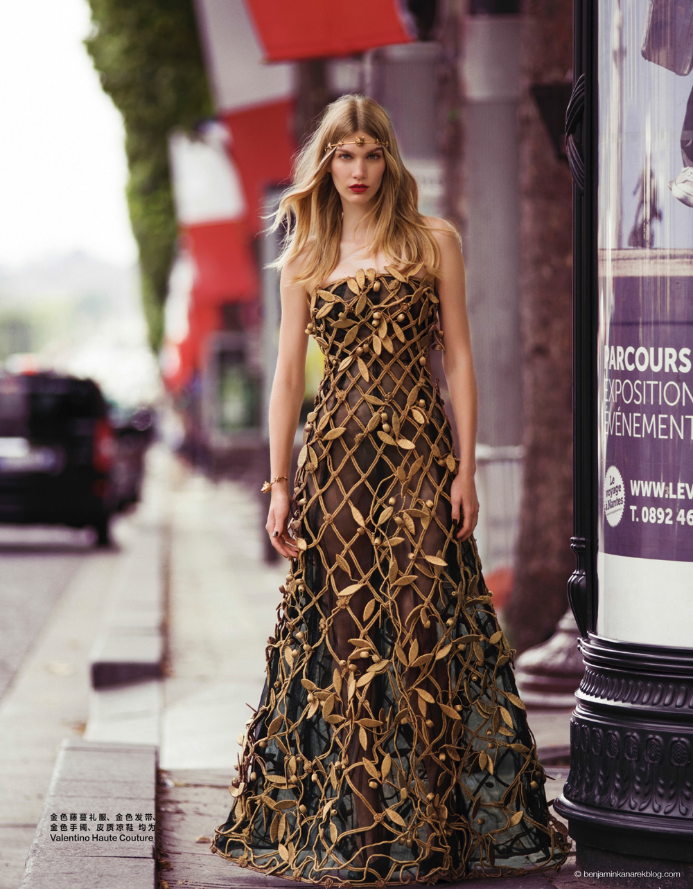 Couture On Street - For the October issue of Harper's Bazaar China magazine, Russian beauty Irina Nikolaeva wears Roman heritage inspired pieces from the Haut Couture collection by Valentino, styled together by Coline Peyrot, Nikolaeva poses on the streets of Paris captured by Benjamin Kanarek. Video Direction by Frédérique Renaut, Makeup by Mélanie Sergeff, Hair by Audrey Lambert.