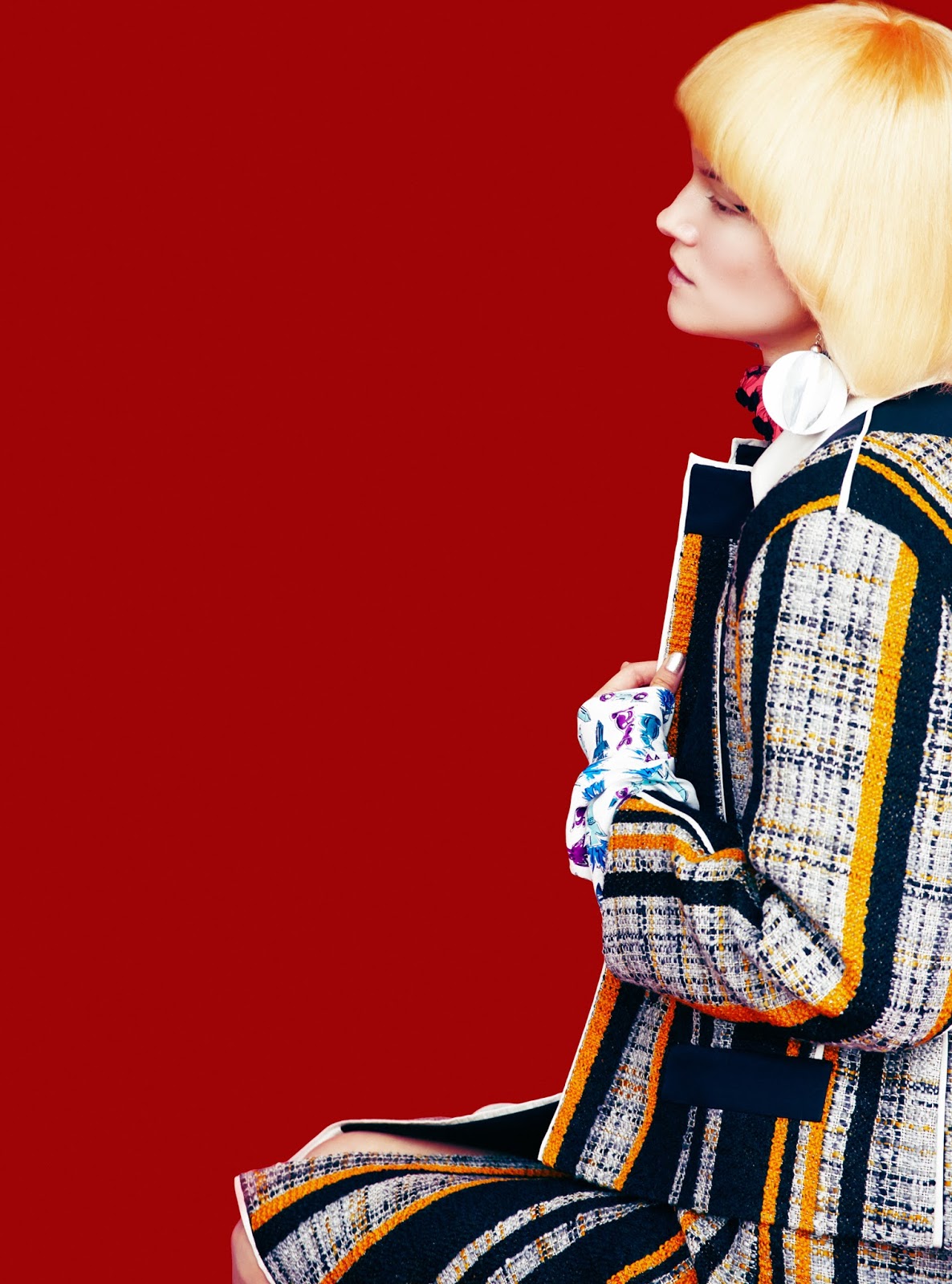 The Collections - Putting the fun into fashion as beauty Kasia Struss dresses-up going from wig to wig in imagery by Erik Madigan Heck, while wearing the art of fashion pieces from spring/summer 2016 shows as stylist Leith Clark puts together looks by Salvatore Ferragamo, Hermes, Giorgio Armani & Bottega Veneta, to name a few for the February issue of Harper's Bazaar UK. Hair by Tomo Kono, Make-Up by Maud Laceppe, Set Design by Andrea Huelse.